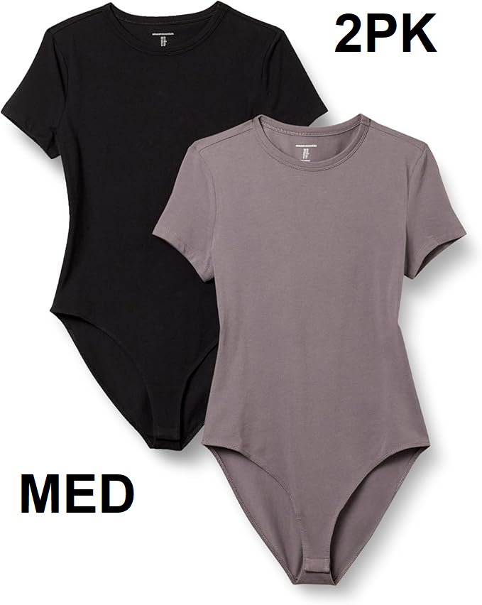 2PK Women's Amazon Essentials Cotton Jersey Slim-Fit T-Shirt Bodysuit- MEDIUM - BLACK/grey - (style: AEWM30343S24)
