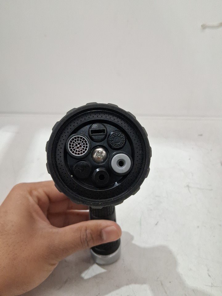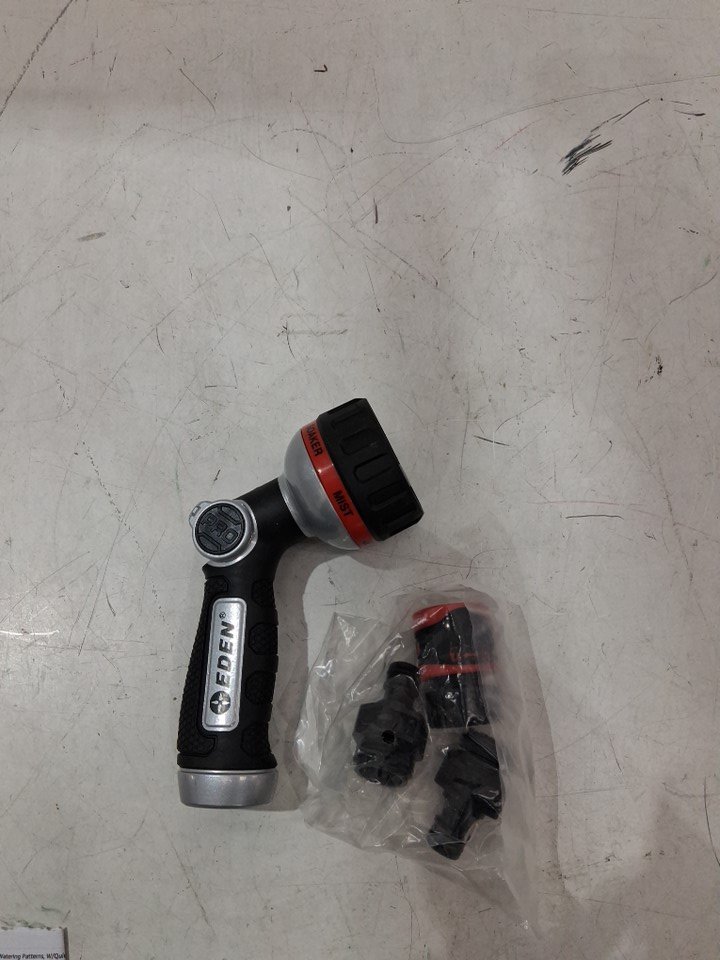 eden heavy duty metal thumb control garden hose nozzle with 6 adjustable watering patterns - 0.75'' outlet connection - black (model: 94814)
