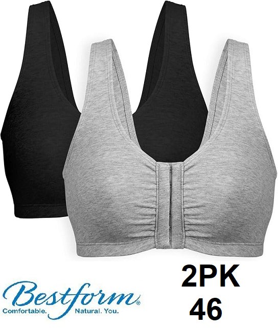 2pk WOMENS BESTFORM WIRE FREE SIMPLE BRA - 46 - GREY/Black (STYLE: 5006014)