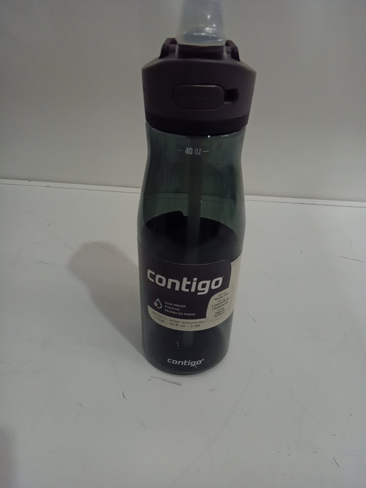 Contigo ashland 2.0 water bottle with straw leak proof lid push button AUTOSPOUT - 40oz - Licorice/grey