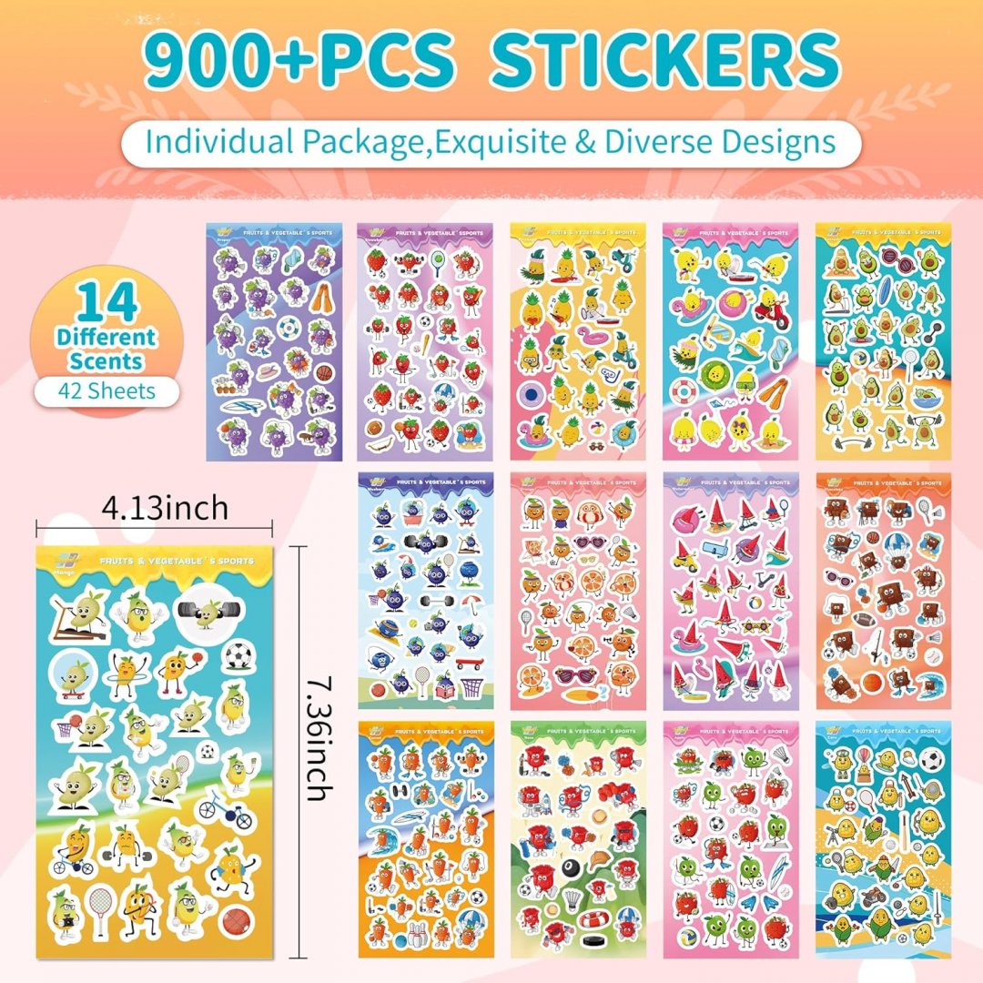 KIDS 900PK Tageenla Scented Stickers WITH 14 Different Scents - 42 SHEETS - SPORT THEME