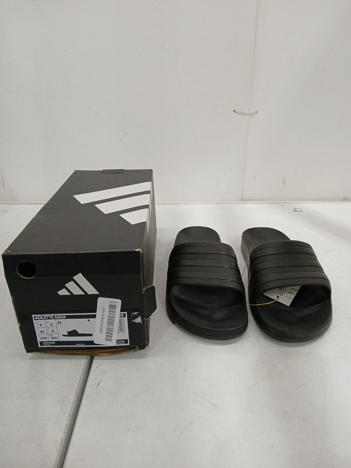 unisex adidas adilette aqua slide on flip flops - size 11 - black (STYLE: f35550)