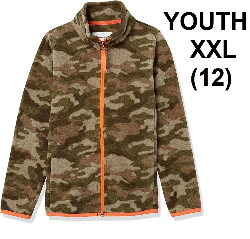 kid's unisex amazon essentials polar fleece full-zip mock jacket - xxl (12) - camo (style: B-S17AE10010_s-ca/o)