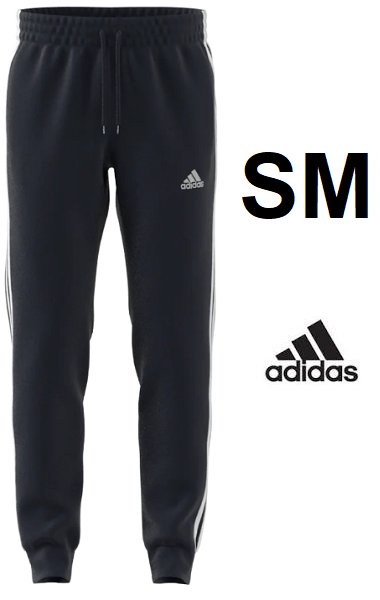 MENS ADIDAS Stripes Tapered Cuff Jogger PANTS - SMALL - BLACK/WHITE (STYLE:IJ6493)