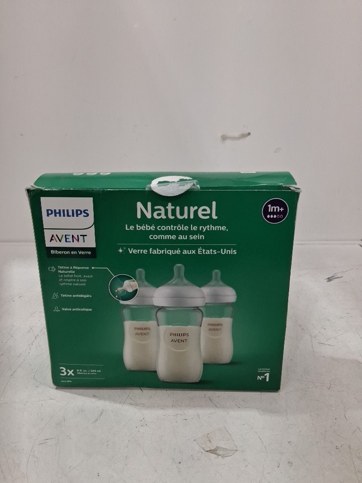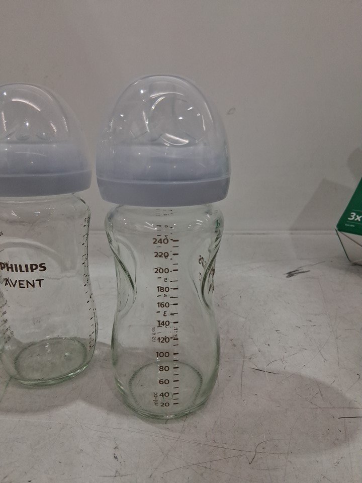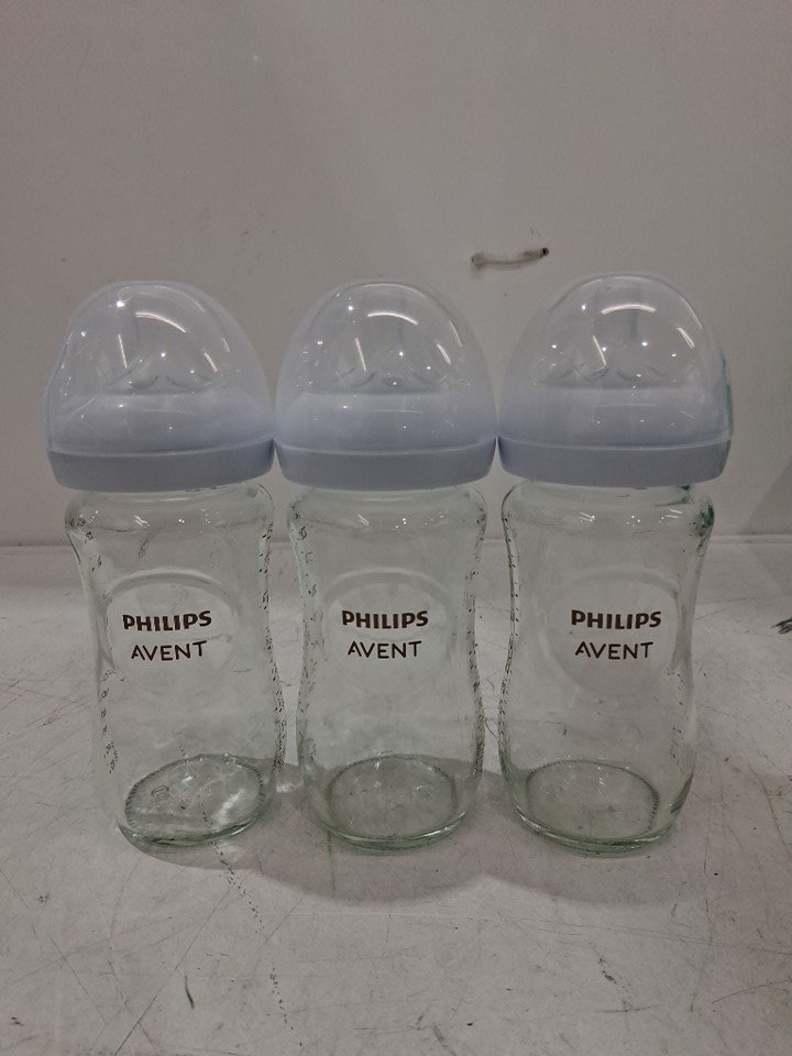 3PK PHILIPS Avent Natural Glass Baby Bottles with Natural Response Nipples - Medium Flow, Flow 3 - 8OZ - (model:‎ SCY913/03)