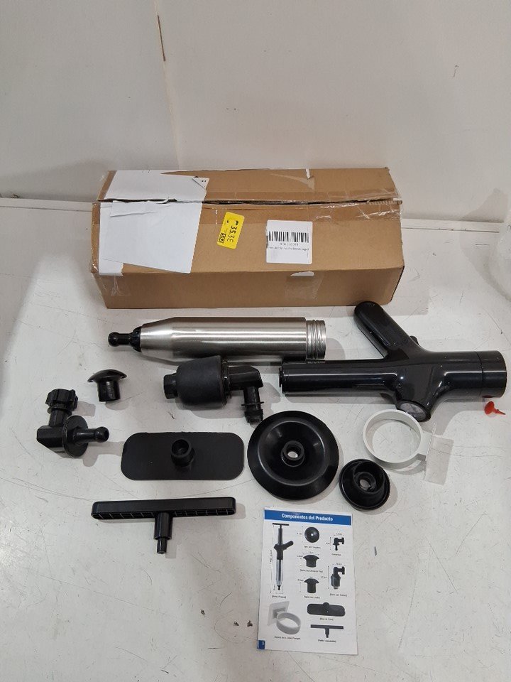 8pc high pressure air drain toilet plunger/drain blocker - black/silver