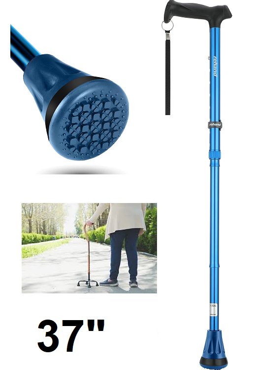 REHAND ADJUSTABLE and COLLAPSIBLE HEAVY DUTY ALL TERRAIN walking cane - 37" - BLUE