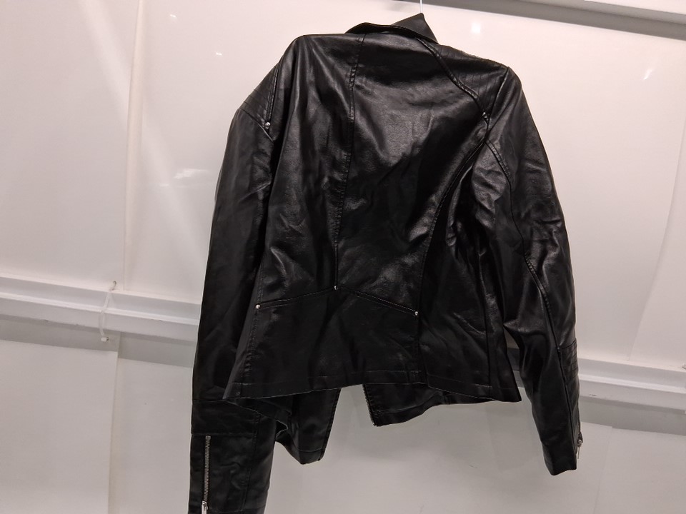 women's fahsyee faux vegan leather moto biker jacket - extra large - black