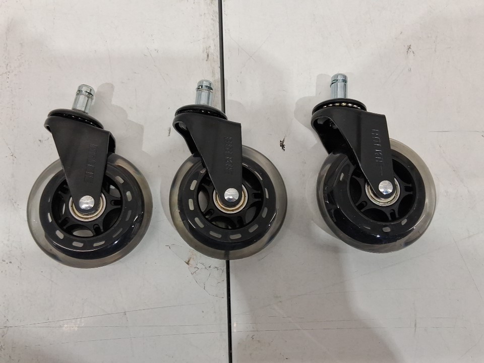 3pk holkie office chair caster roller blade style wheels - 11mm x 22mm - 3"- black