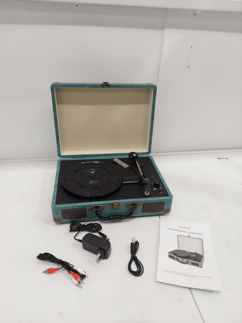 Item arrived with minor cosmetic scuffs on the inside but nothing that should effect use. Item arrived loose without a box. tested for power and function with bluetooth and record. see photos.