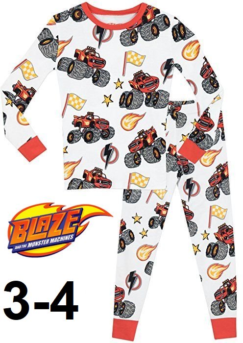 BOY'S BLAZE AND THE MONSTER MACHINES LONG SLEEVE PAJAMA SET - 3T-4T WHITE