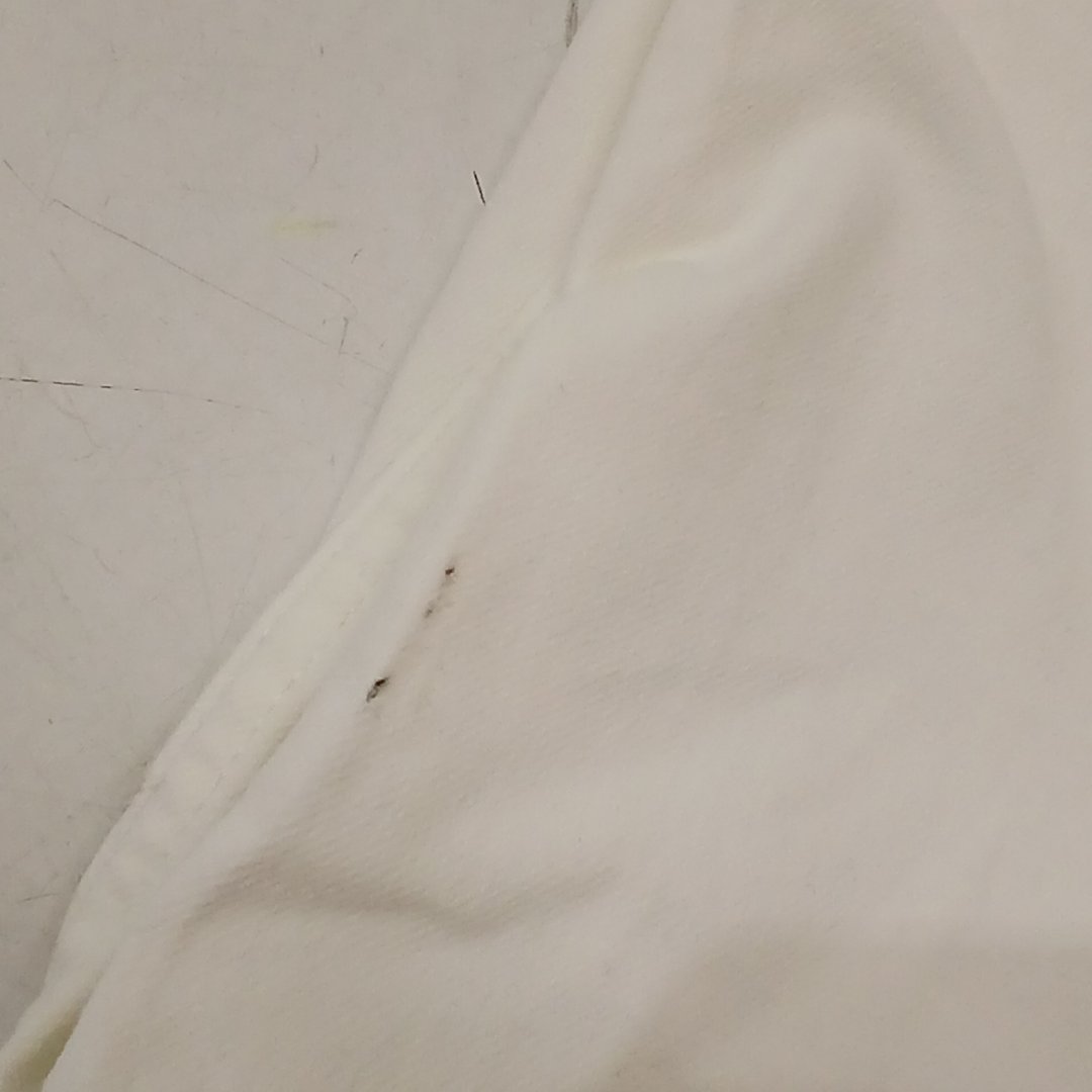 small black mark on the side of one of the pant legs