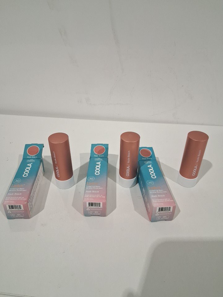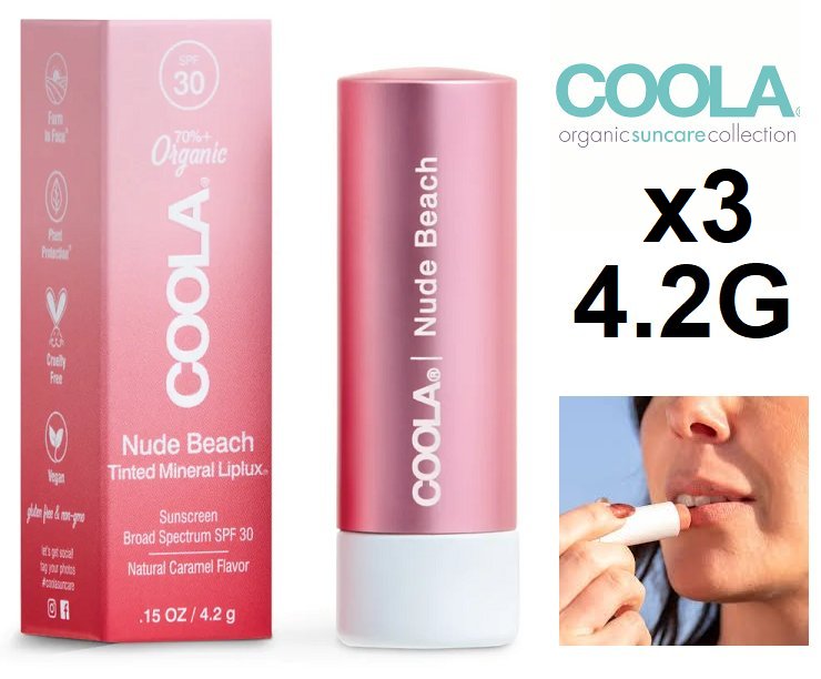 3 COOLA MINERAL LIPLUX ORGANIC TINTED LIP BALM SUNSCREEN 30 SPF - 4.2G each - NUDE BEACH