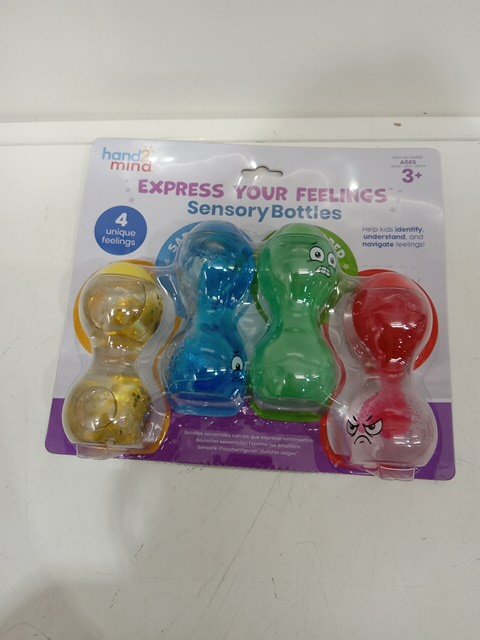 4PK HAND2MIND EXPRESS YOUR FEELING SENSORY BOTTLES - HAPPY/SAD/SCARED/ANGRY - blue/red/gold/green