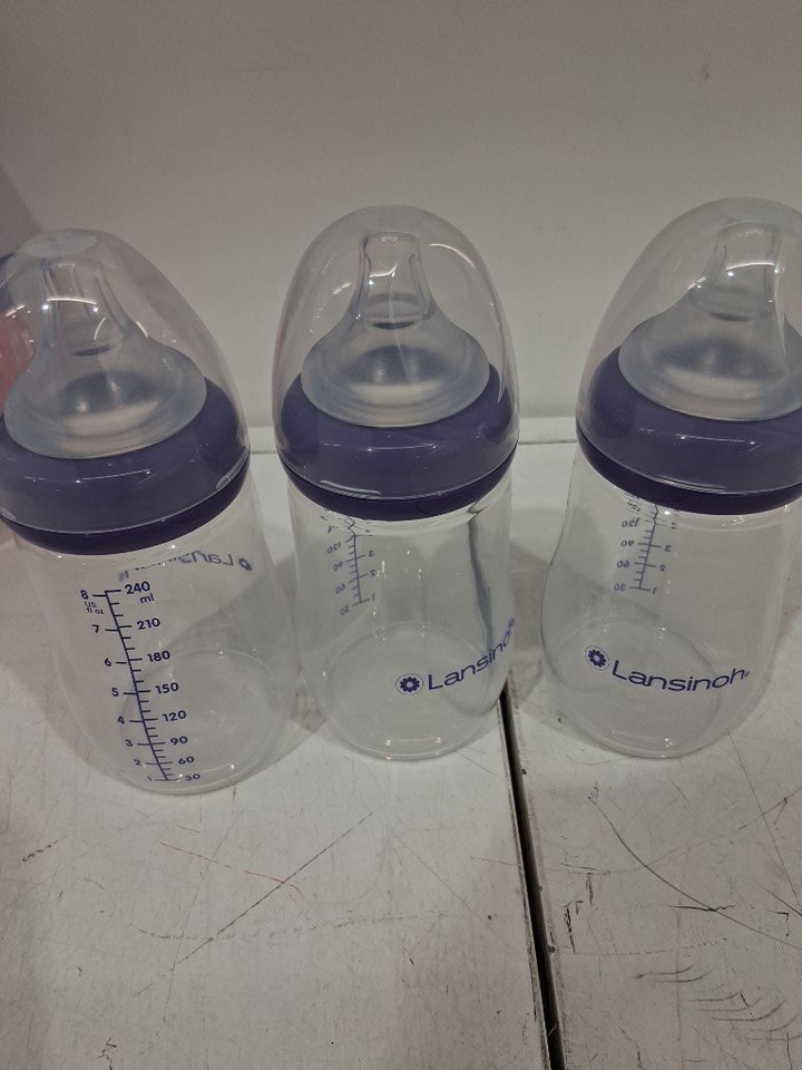 3pk lansinoh feeding bottles - 8oz - medium 3m+ - clear/purple