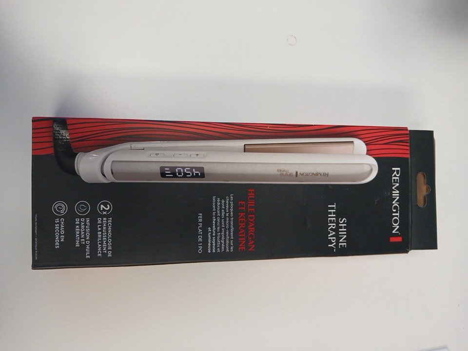 REMINGTON SHINE THERAPY FLAT HAIR STRAIGHTENER IRON INFUSED WITH ARGAN OIL & KERATIN - 1"- WHITE (MODEL: S9511)