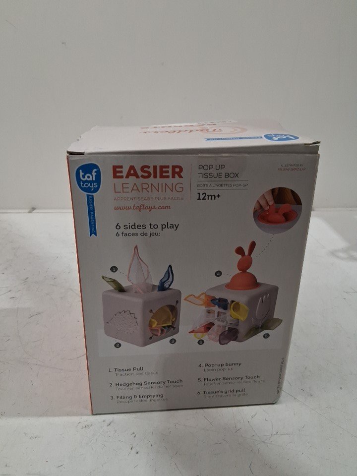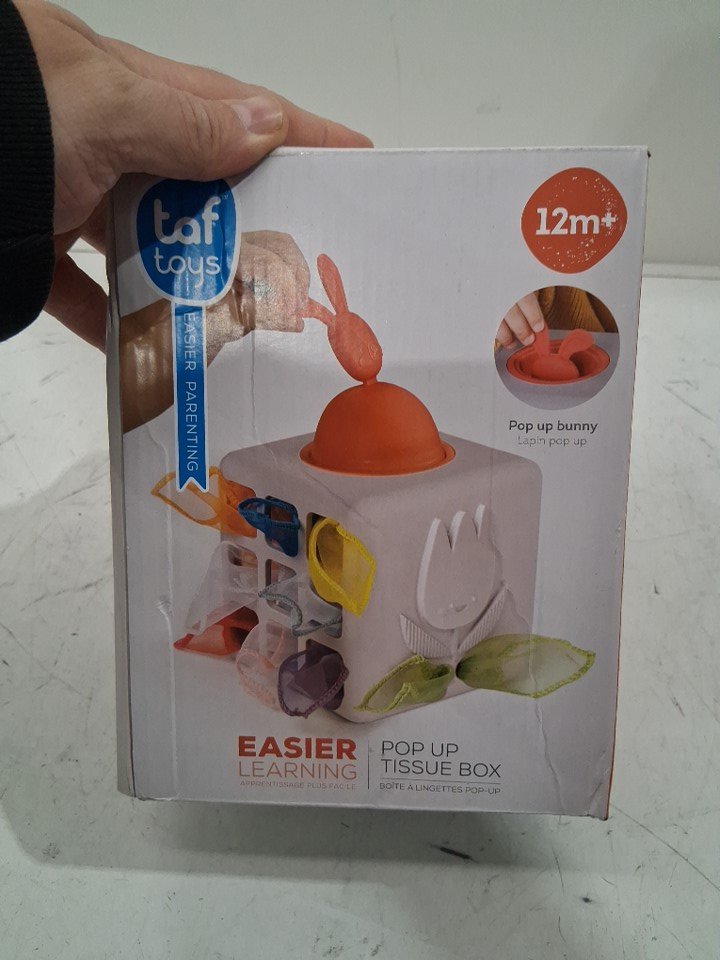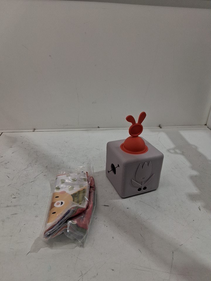 10pc Taf Toys Baby Tissue Box Montessori Toys for Babies - Sensory & Motor Skills Development Silicone Toy with 10 Fabric Tissues, Pop-Up Bunny - multi colour