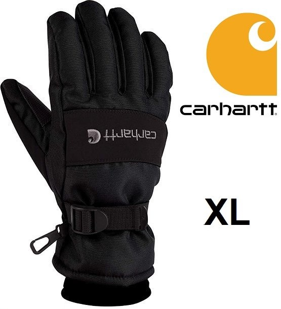 MEN'S CARHARTT WATERPROOF INSULATED KNIT CUFF WINTER GLOVES - extra large - BLACK - (style: A511)