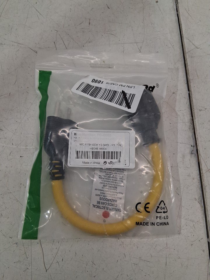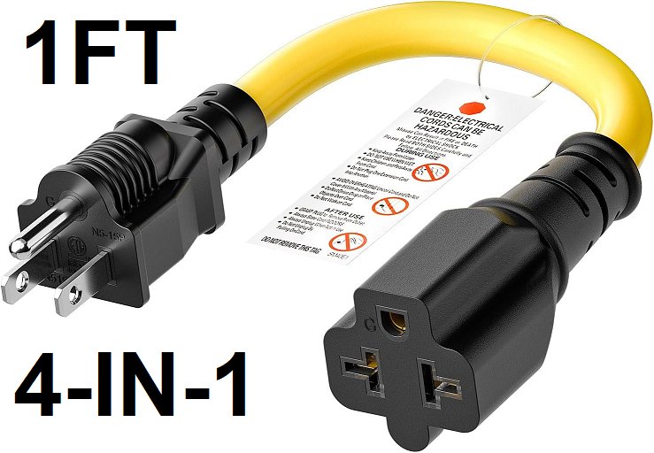 4-in-1 short extension cord - 1ft - 20a - 3 prong - yellow/black (model: ‎XN515P-D)