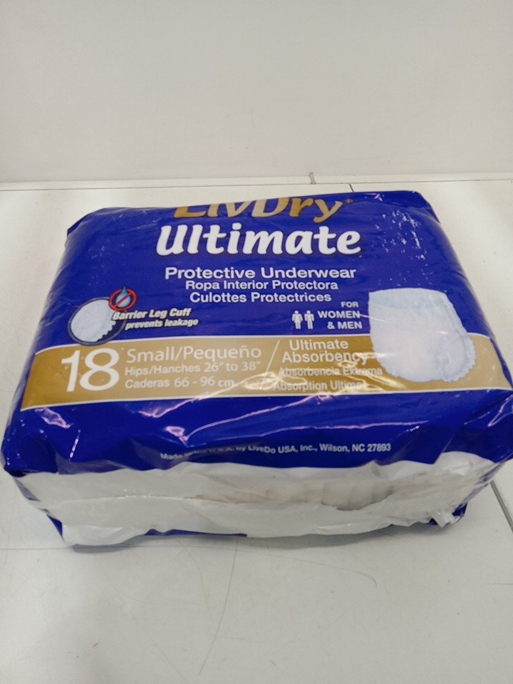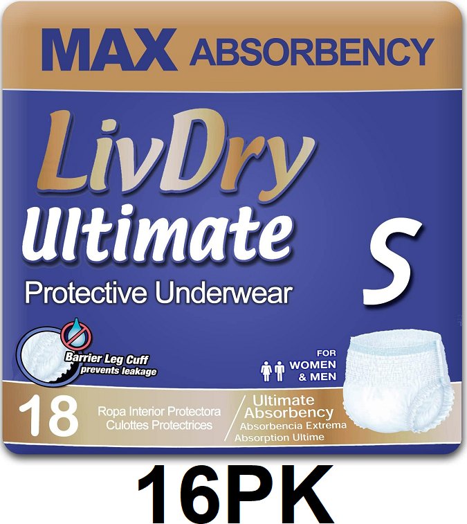 16pk Adult UNISEX LivDry Incontinence Underwear - SMALL - ultimate absorbency - white