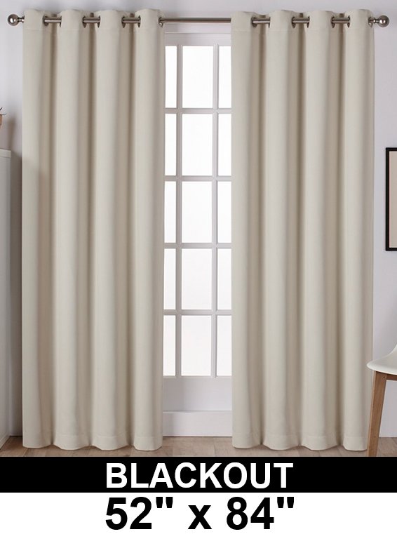 (2 PANEL) EXCLUSIVE HOME Sateen Twill Weave Insulated Blackout Grommet Top Window Curtains - 52" X 84" - BIEGE (MODEL: 51818046)