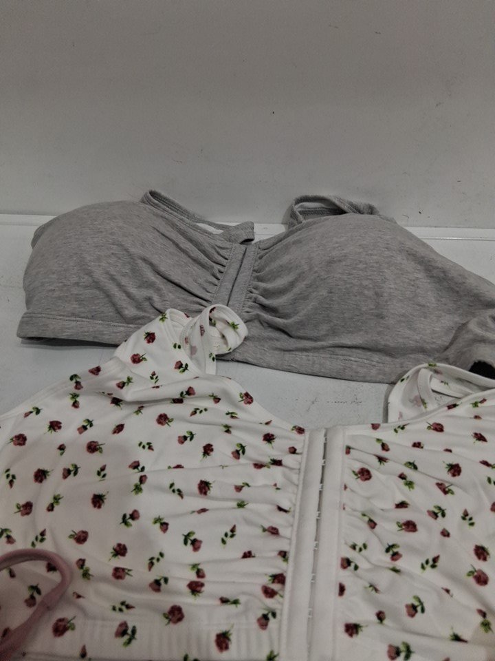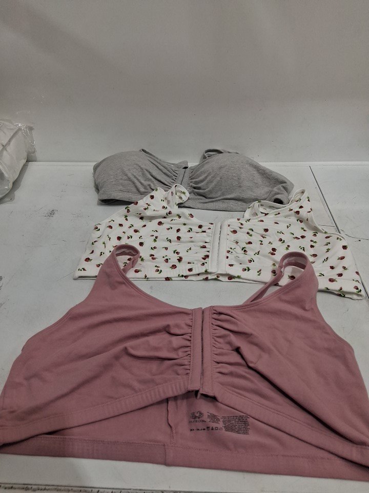 3pk women's fruit of the loom Front Close Built-up Sports Bra - size 48 - grey/pink/white (style:21424)