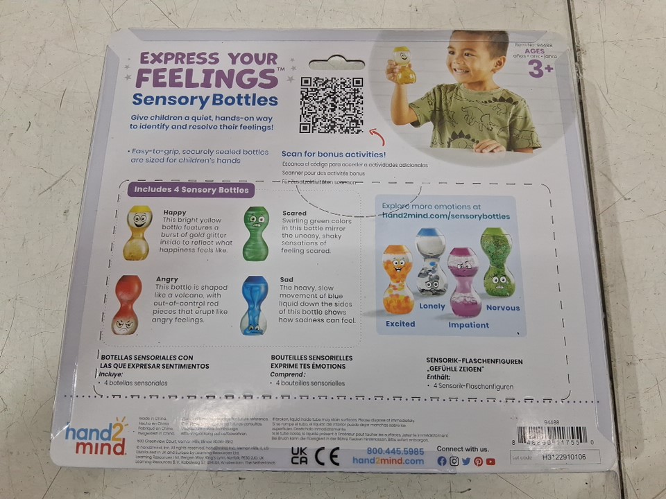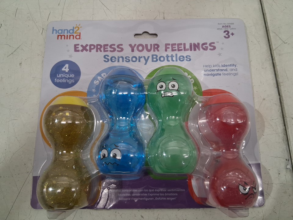 4PK HAND2MIND EXPRESS YOUR FEELINGs SENSORY BOTTLES - HAPPY/SAD/SCARED/ANGRY - blue/red/gold/green (model: 94488)
