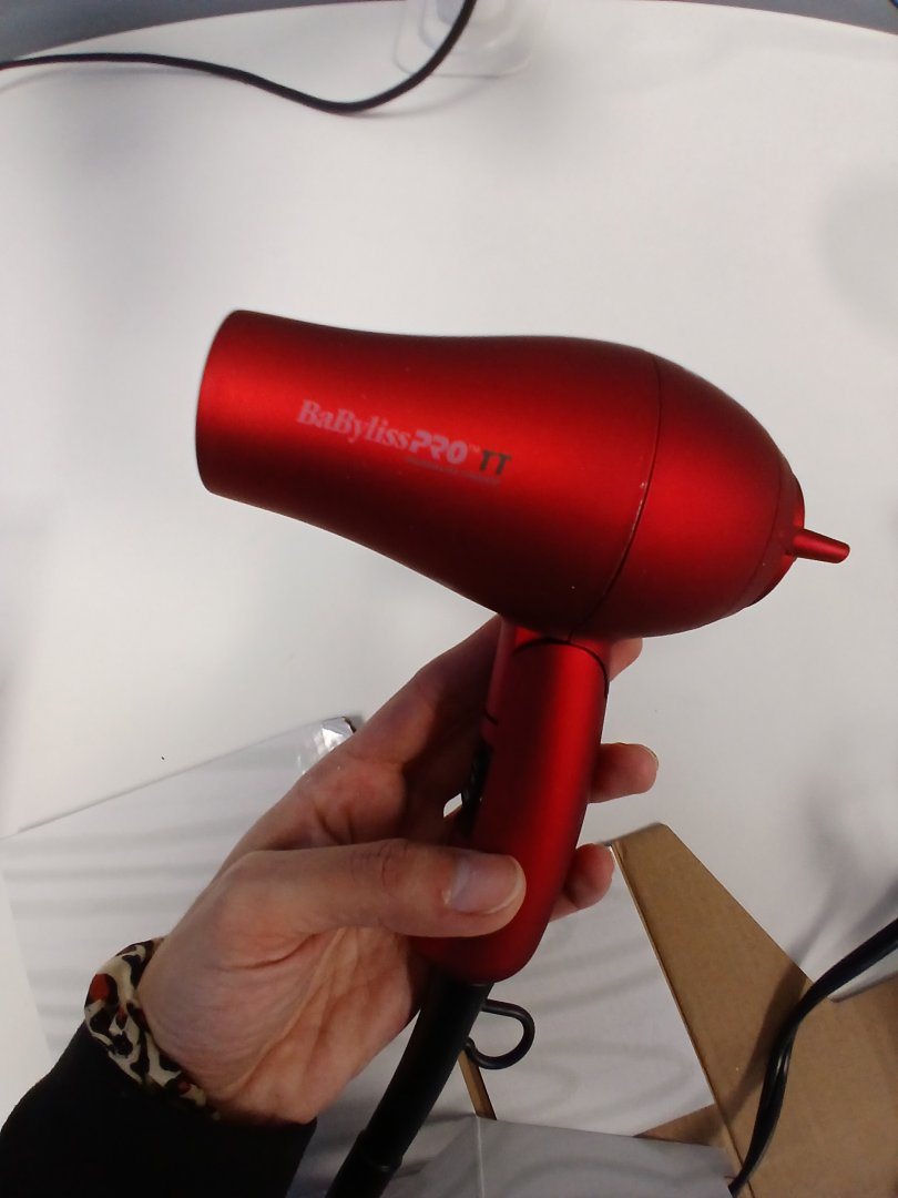 BABYLISS PRO TT TOURMALINE TITANIUM MICRO TRAVEL HAIR DRYER WITH FOLDING HANDLE - 1500W - RED (MODEL: BABTT053TC)