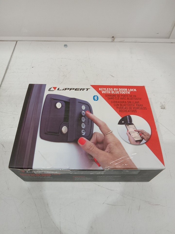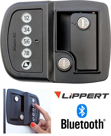 Lippert Keyless RV Door Lock with Bluetooth, Fits RVs with a 2-3/4" x 3-3/4" cutout and 1-3/8" to 1-1/2" - black