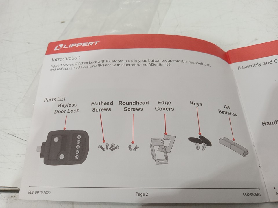 Please note: This product has been previously installed and shows minor signs of use, including light installation and surface marks. The battery unit’s wire pin, which connects to the keyless button unit, is loose and will need to be secured with glue. Additional generic hardware may be required for installation. Tested for basic power only. (Please see photos)
