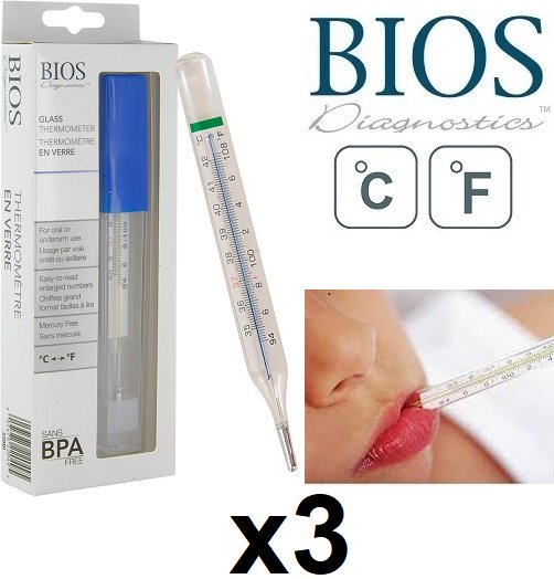 3 BIOS Diagnostics Glass thermometer with case for oral or underarm use (model: 22ODI)