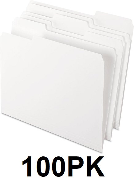 100PK PENDAFLEX FILE FOLDERS - LETTER SIZE - WHITE (MODEL:R411)