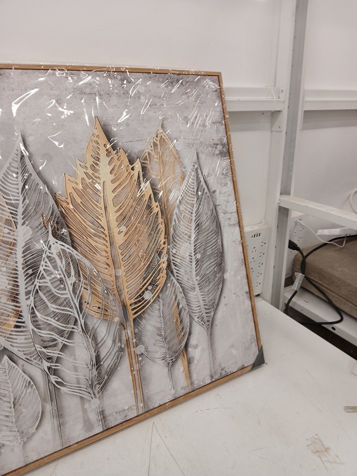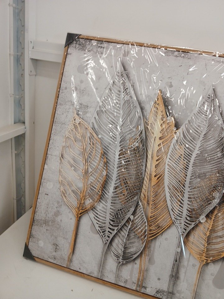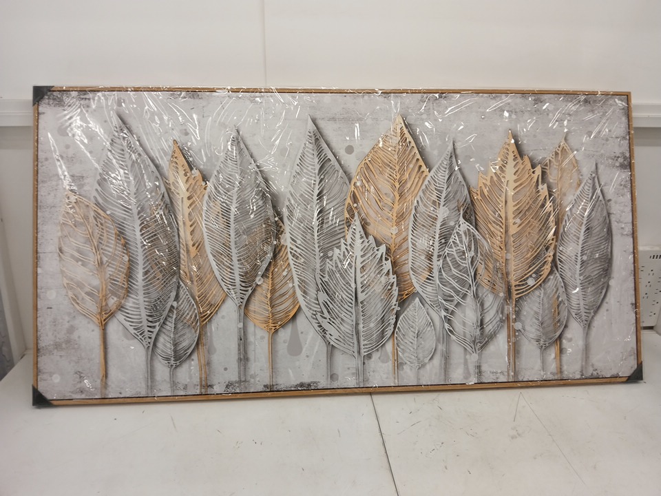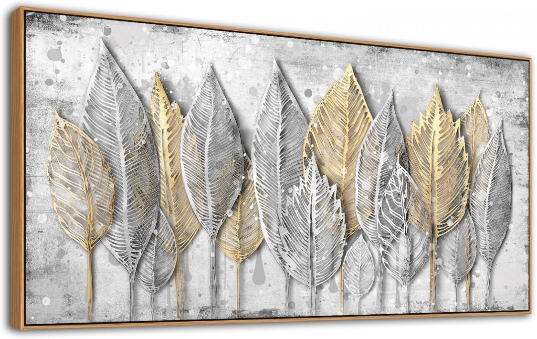 NINEASO Framed Gold Silver Leaves Canvas Modern Aesthetic Wall Art Pictures - 28.93" X 57.87"