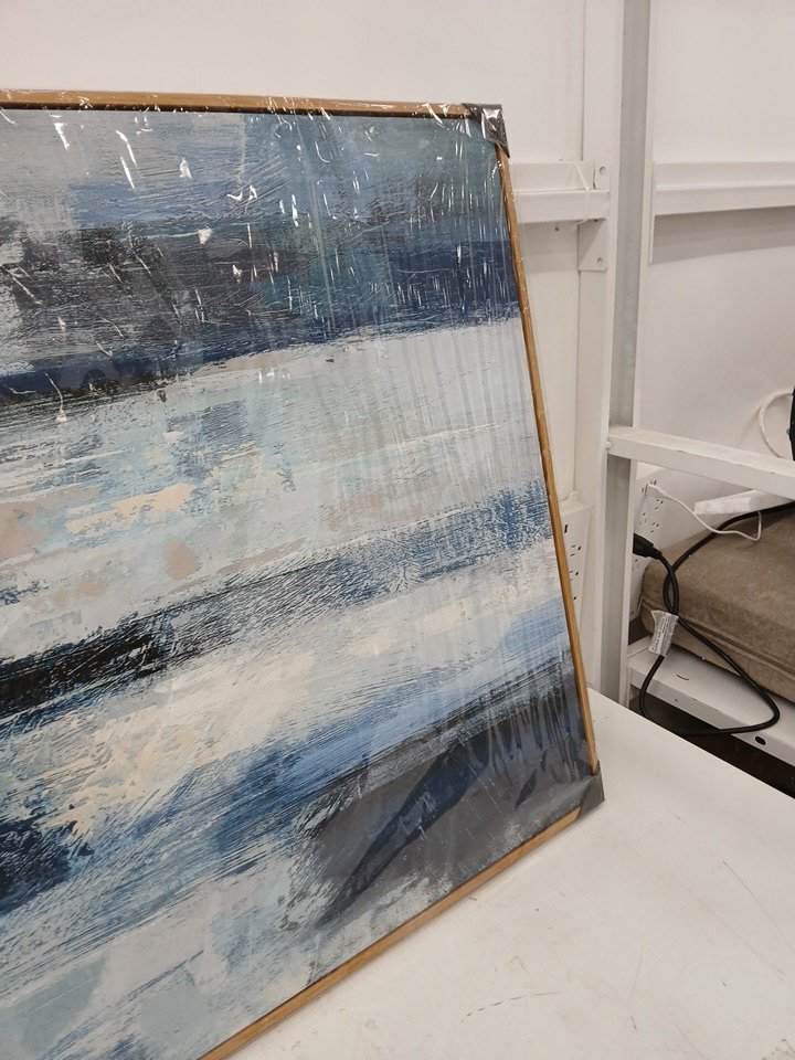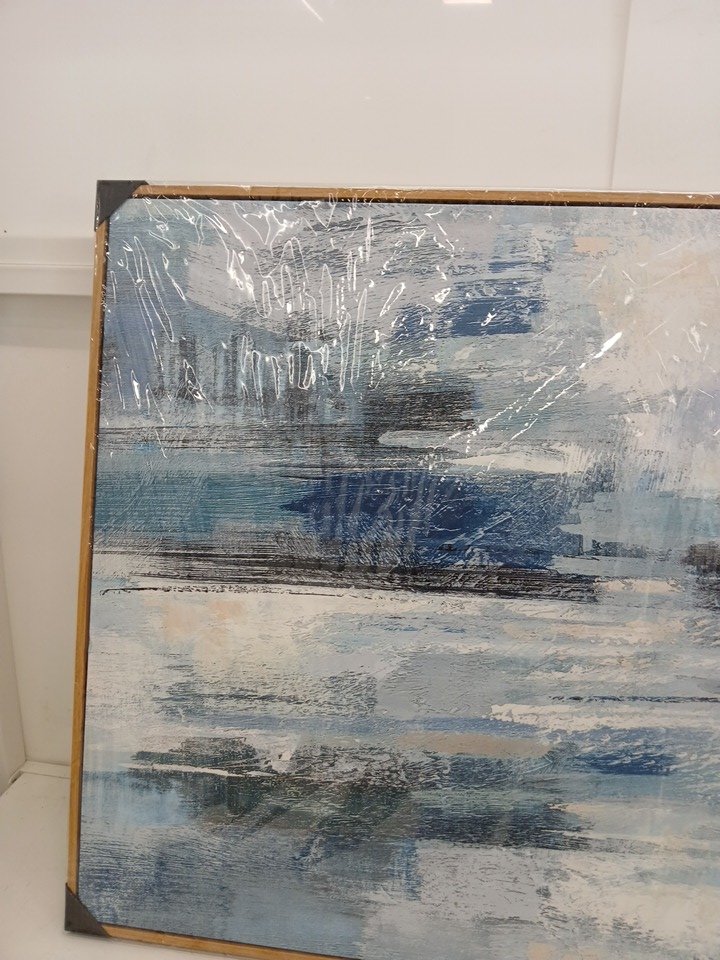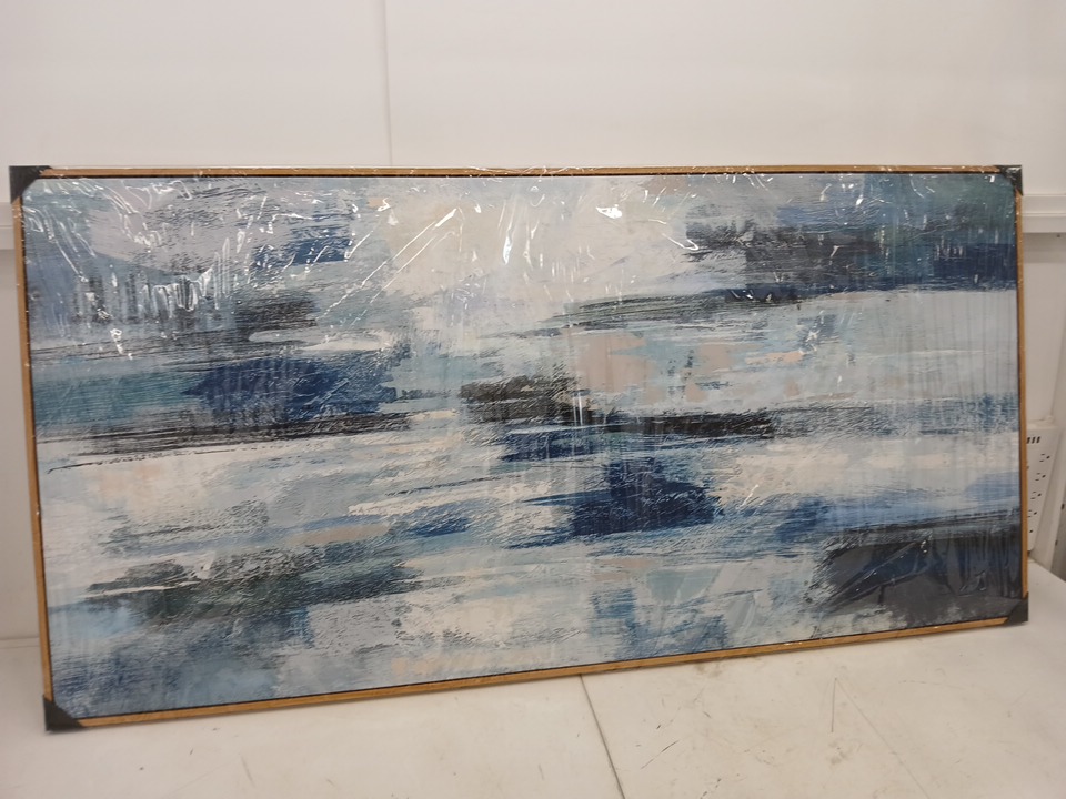 NINEASO Indigo Framed Wall Art Abstract Ocean Canvas Pictures - 28.93" X 57.87"