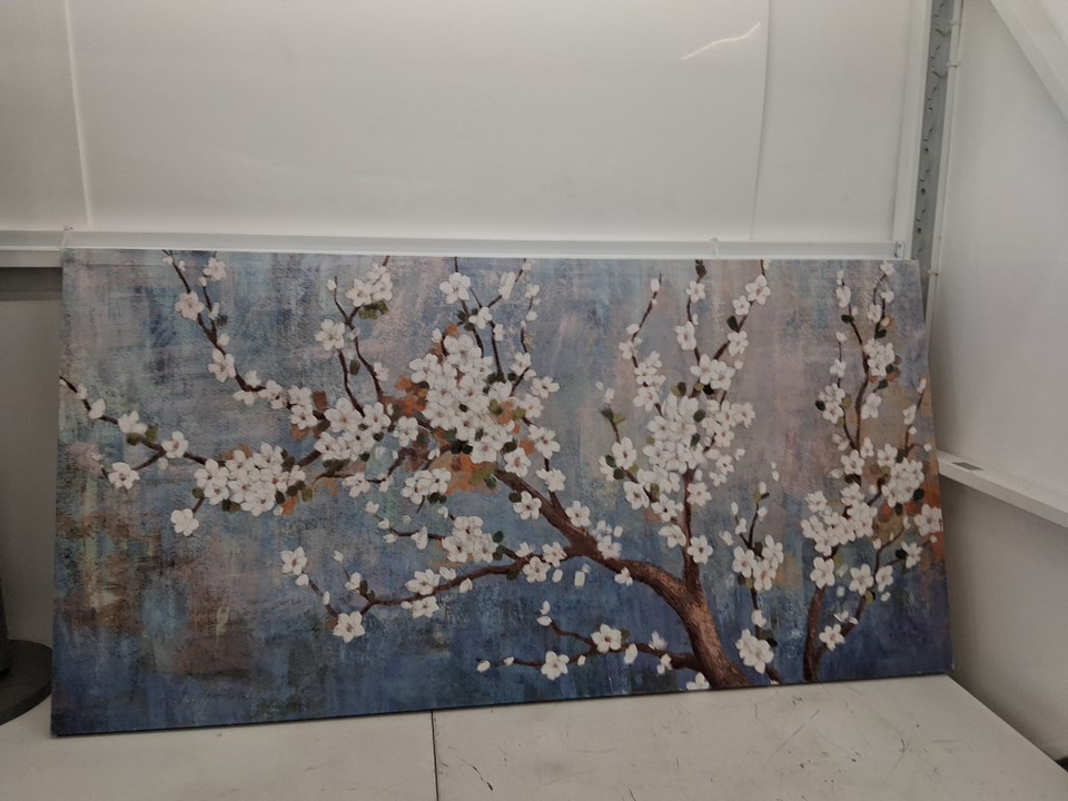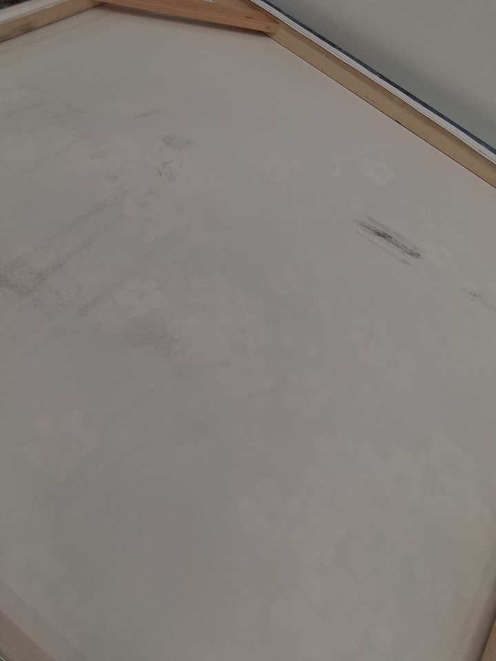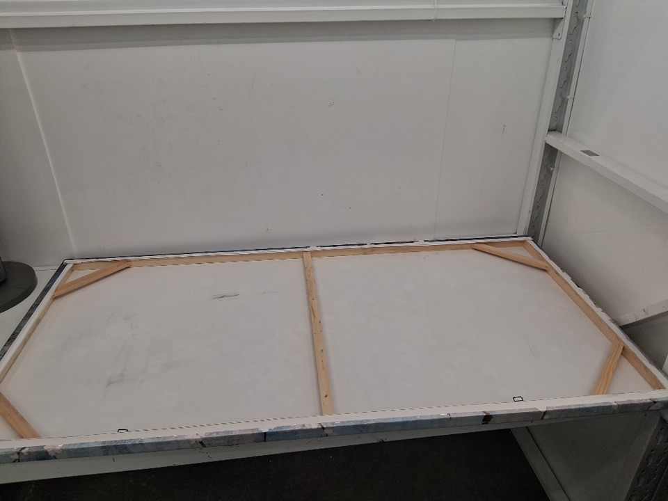 Please note the item is shipped without any packaging so it has some dirt marks on the back of the canvas and one of the hanging brackets is broken (see photos for reference).