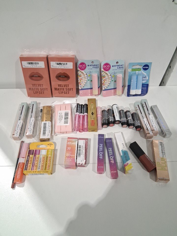 35+ ASSORTED LIP CARE PRODUCTS - VARIOUS BRANDS/SIZES/TREATMENTS
