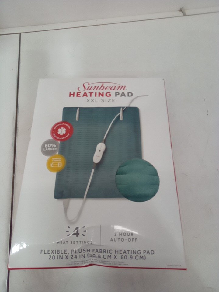 SUNBEAM HEATING PAD WITH 4 HEAT SETTINGS - 2 HOUR AUTO SHUT OFF AND REMOTE CONTROL - XXL - 20" x 24" - TEAL/blue - (MODEL: 2005-525-CN)