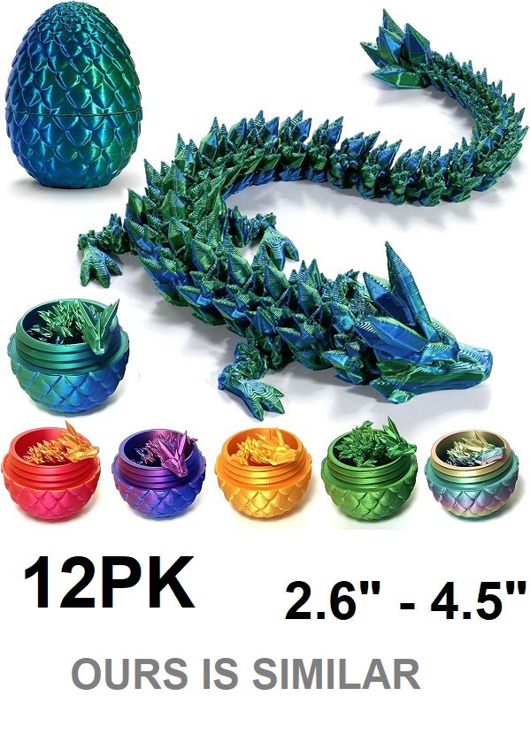 12pk 3d printed dragon eggs with dragons inside - 2.6" - 4.5" - Multicolour