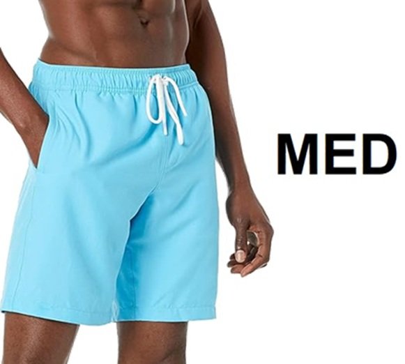 MENS' AMAZON ESSENTIALS 9" SWIM SHORTS/TRUNKS - MEDIUM - aqua (style: Ae1671278)