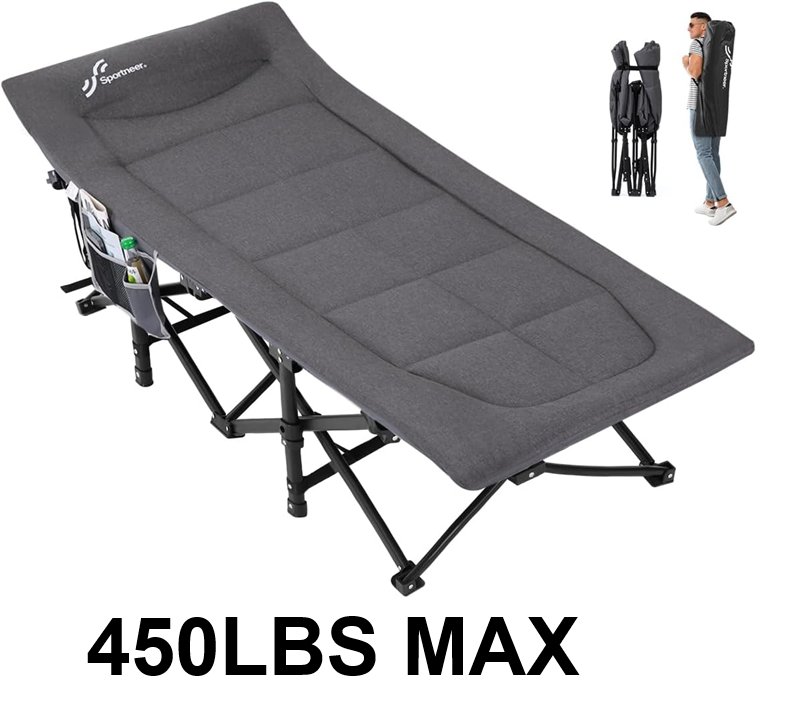 Sportneer Camping sleeping Cot with Cushion Max Heavy Duty Folding - Grey - 73" 27" x 14.5"