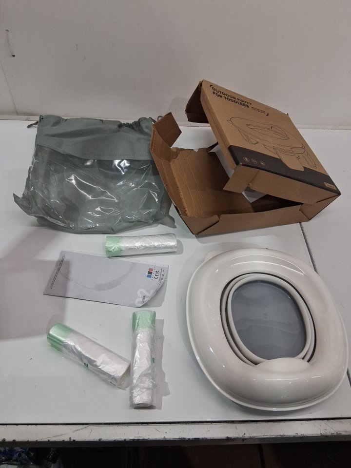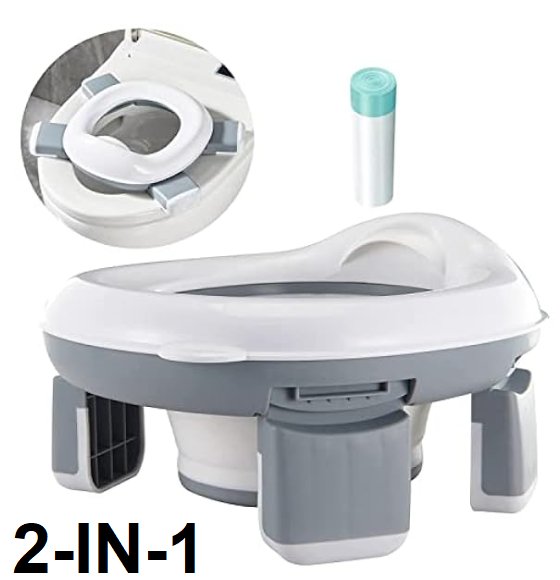 TODDLERs PANDAEAR 2-IN-1 FOLDABLE, PORTABLE, STORAGE TRAVEL BAG, EASY TO CLEAN POTTY TOILET WITH DISPOSABLE BAGS - 10.6"x11.8"x3.9" - WHITE/GREY