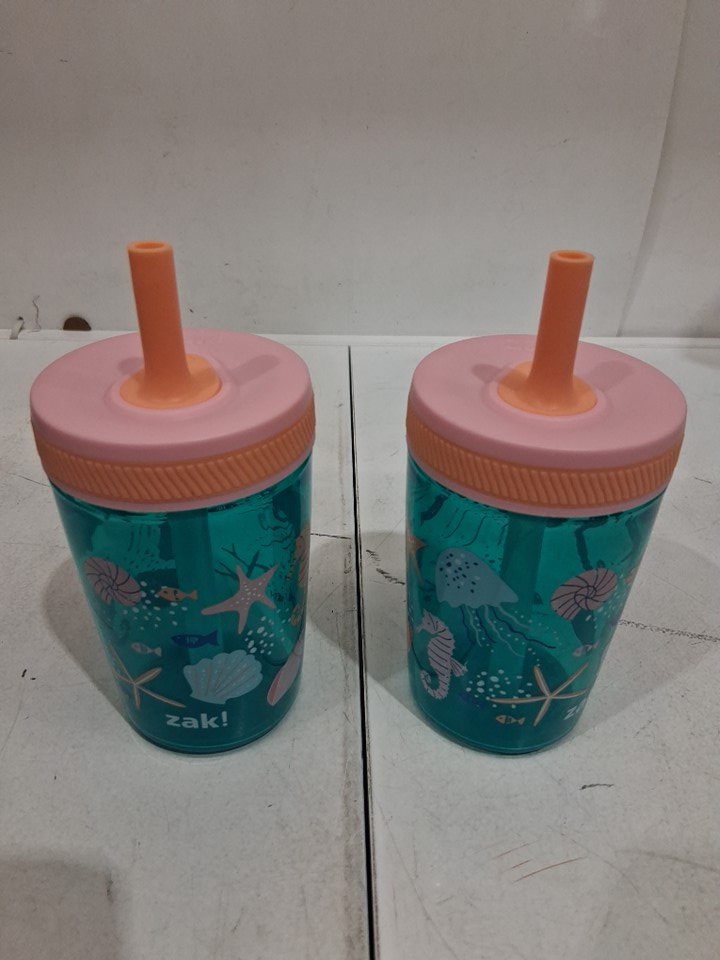 2pk Zak Designs Leak-Proof Kelso TUMBLER SET with Screw-On Lids & Straw - 15oz - shells
