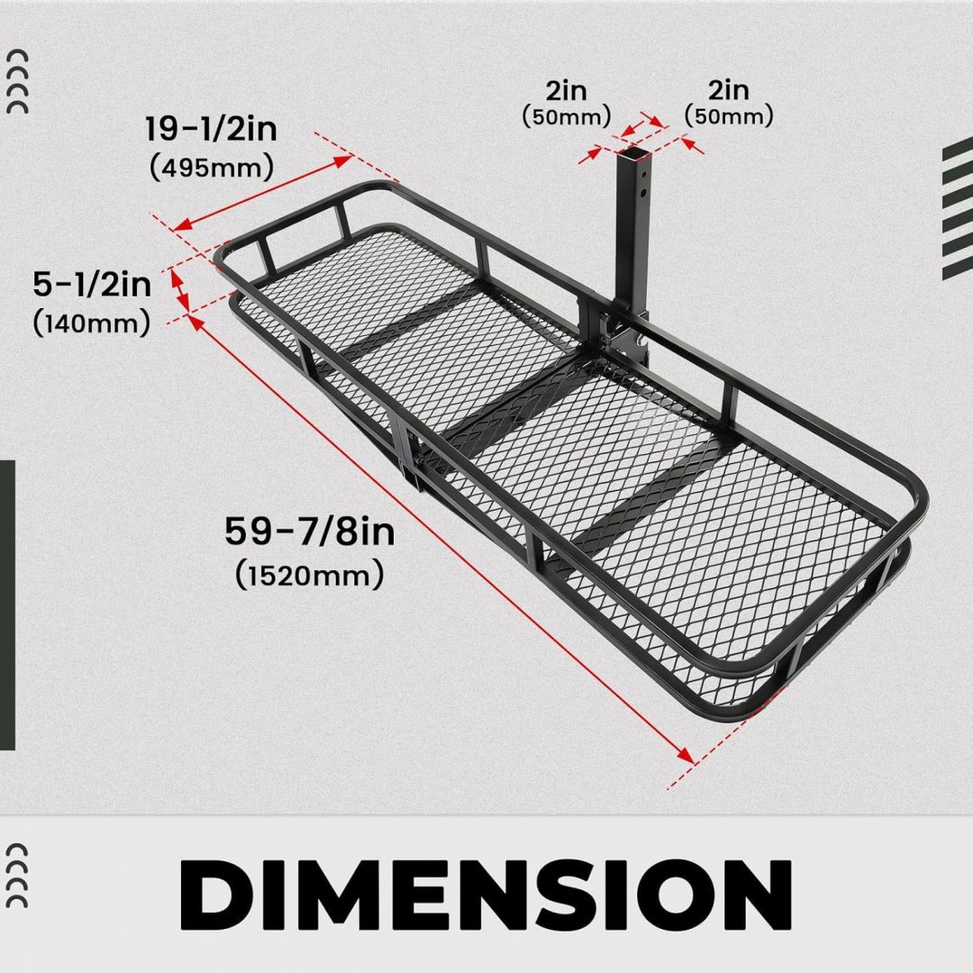 KUAFU FOLDING HITCH MOUNT cargo carrier - compatible with 2" x 2" hitch receiver - 60" x 19.5" - black (model: ‎BL1987)