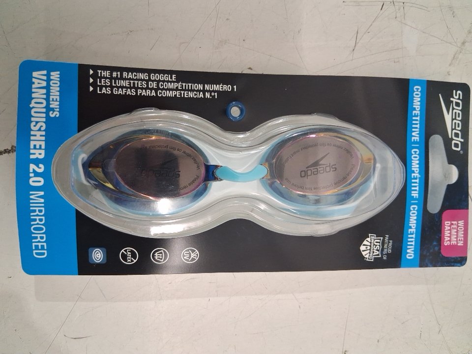 WOMEN'S SPEEDO VANQUISHER 2.0 MIRRORED COMPETITIVE SWIM GOGGLES - ONE SIZE - BLUE/MIRROR