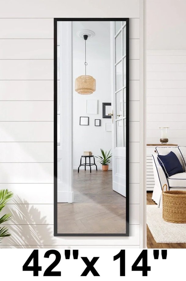 costway full length wall mounted mirror with 3 height options - 42" x 14" - black - (model: hw71534bk)