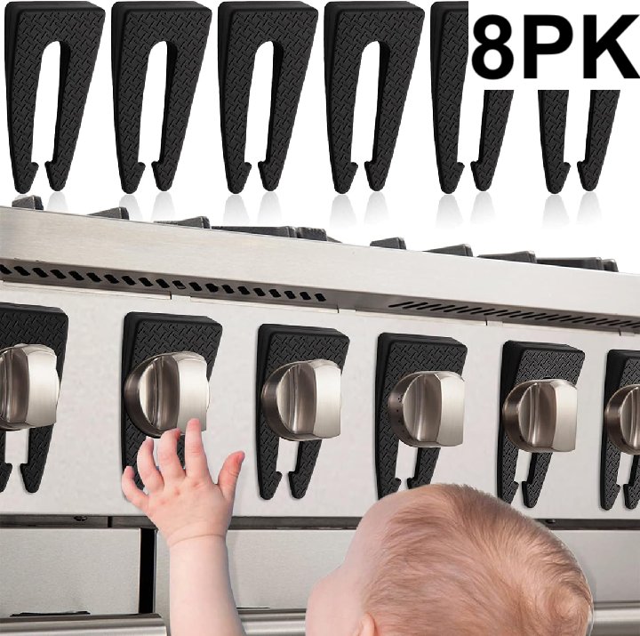 8PK Universal Stove Knob Covers for Child Safety - Grey