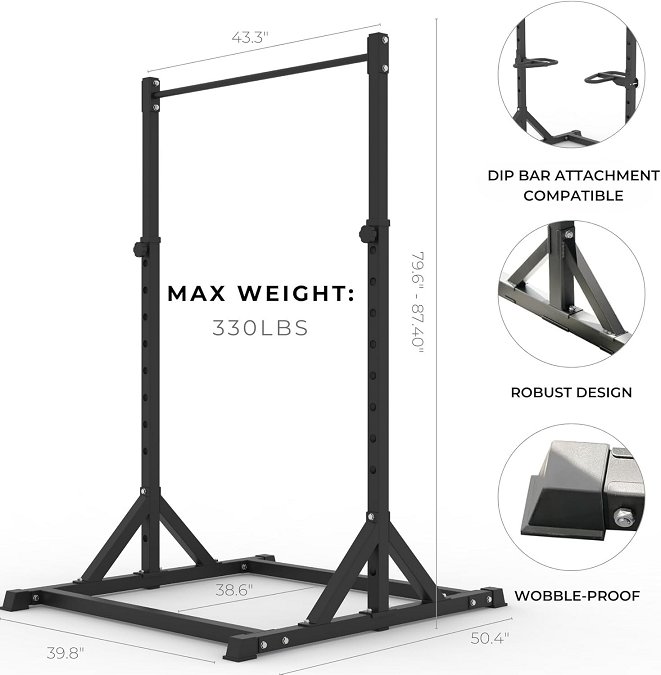 HANZO FIT POWER TOWER PULL UP BAR, PREMIUM HEAVY-DUTY WORKOUT STATION WITH 8 ADJUSTABLE LEVELS FOR HOME GYM - BLACK