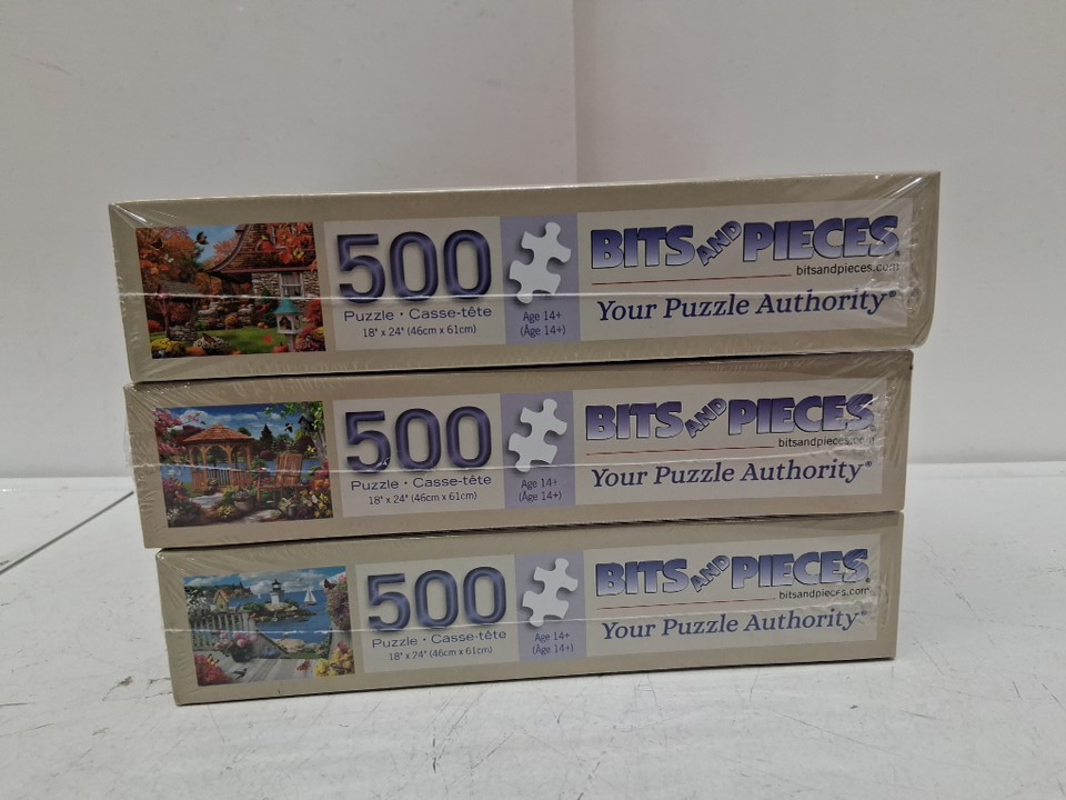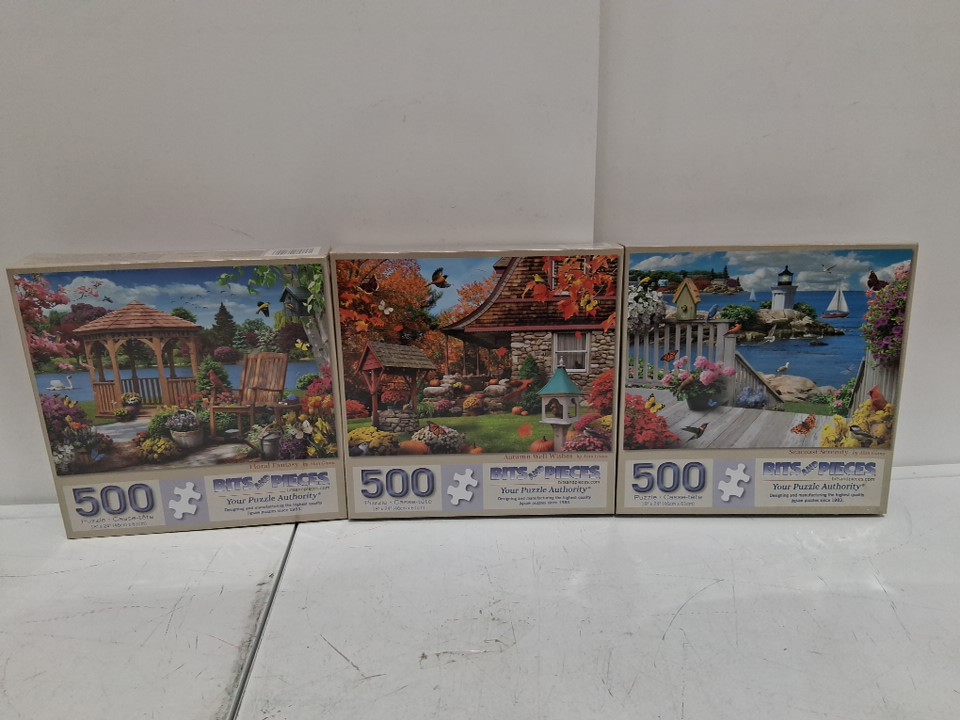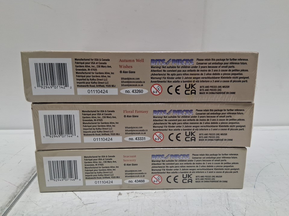 3pk 500pc bits and pieces jigsaw puzzles - Autumn Well Wishes, Seacost Serenity, Floral Fantasy - 18" x 24" (500pc each)