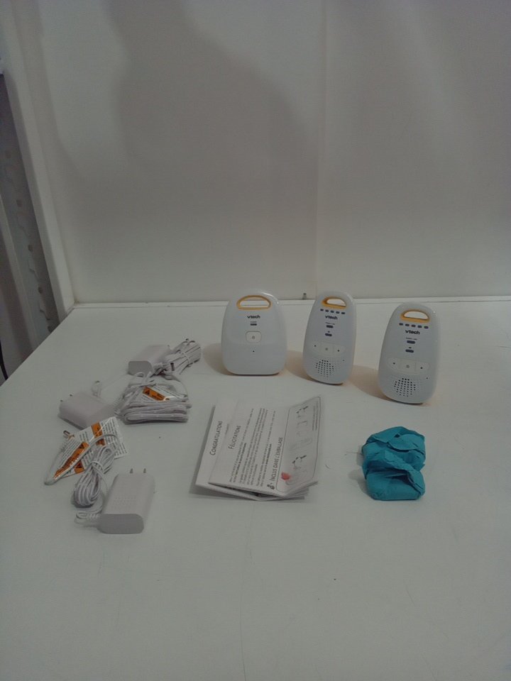 3pc VTech Safe and Sound Audio Baby Monitor with 2 Parent Units - White (model: d111-2)