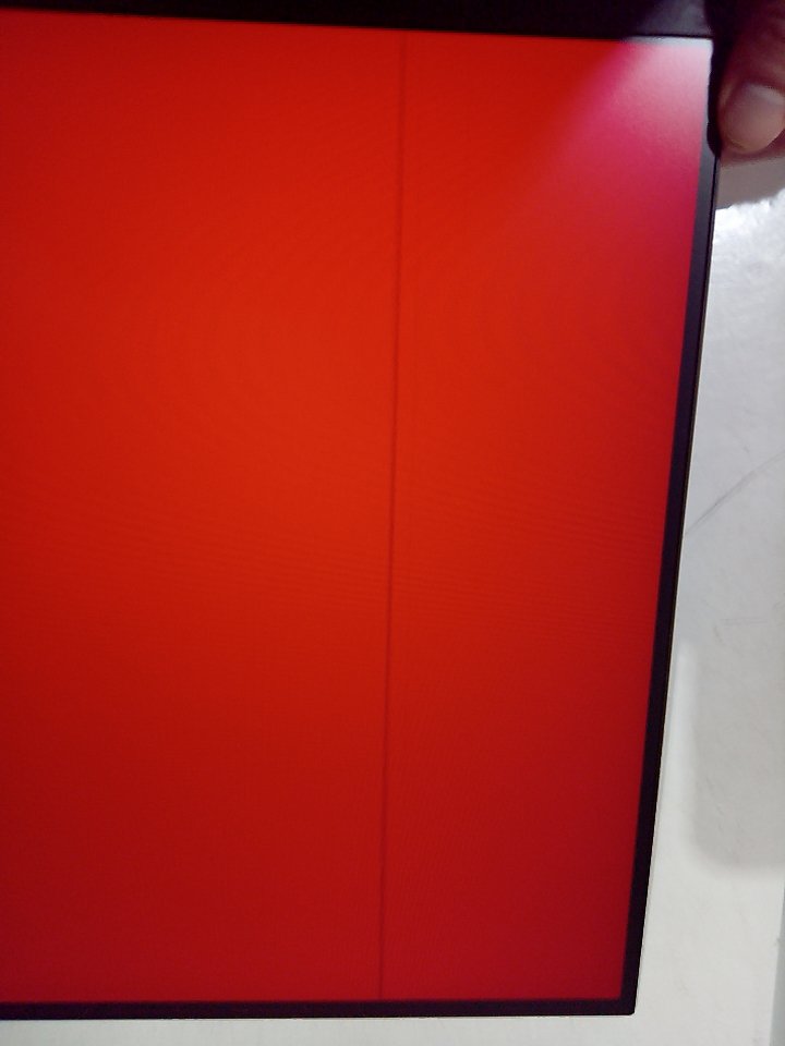 There is a faint black line running across the left side of the screen vertically that jitters side to side slightly. Tested for power and display through HDMI connection. (SEE PHOTSO)